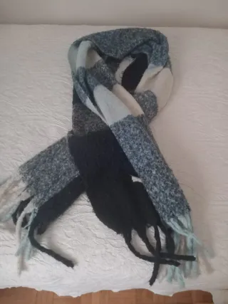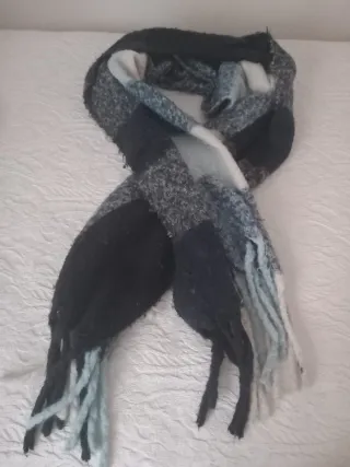 Bufanda blanca y negra de tacto calentito, marca española. No se ha usado apenas. Gratis con cualquier compra de mi perfil