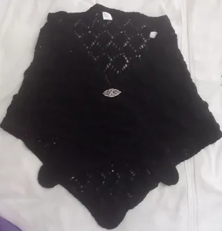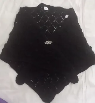 Preciosa toquilla de punto en color negro, talla XL. Es un accesorio elegante y versátil. - Diseño de encaje. - Acabado con puntilla en los bordes. _ no incluye broche.
