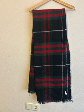 Bufanda con un diseño de cuadros tradicional y atemporal. Perfecta para añadir un toque de estilo a cualquier atuendo. - Diseño de cuadros en negro, rojo y verde. - Acabado con flecos en los extremos.
