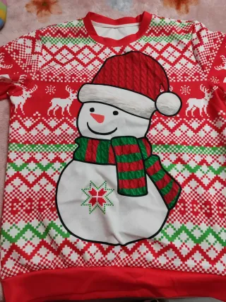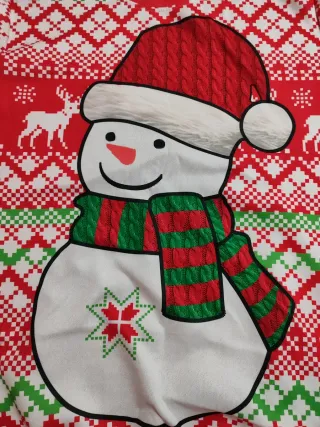Sudadera con estampado navideño de un muñeco de nieve. - Diseño festivo con patrón de rombos y renos. - Muñeco de nieve con gorro y bufanda. - Detalle de estrella en el pecho del muñeco.
