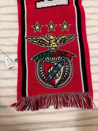 Color rojo y blanco, comprada en Lisboa, con simbología del escudo y el estadio Da Luz. Producto oficial, con etiqueta de tienda y QR de verificación del club. Ideal para aficionados, coleccionistas o como regalo. 💸 Precio: 15 € (negociable)