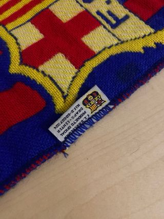 Bufanda oficial del FC Barcelona con los colores del equipo. - Diseño a rayas rojas y azules. - Logo del FC Barcelona. - Flecos en los extremos.