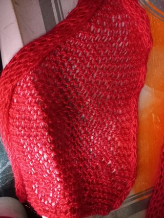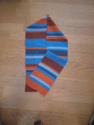bufanda de lana, en tonos rojos, mas de un metro de larga.