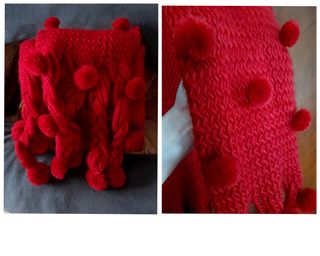 Bufanda de lana, larga, con pompones y flecos. Roja. Mide aproximadamente 220 x 20 cm. Sin uso. Entrego en la puerta principal de El Corte Inglés. También envío.