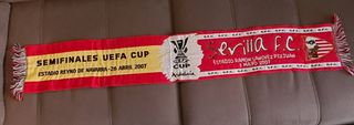 Bufandas conmemorativas del Sevilla FC. - Diseño Supercopa. - Conmemoración Bicampeón. - Incluye detalles de la UEFA Cup Eindhoven 2005 y Glasgow 2007.