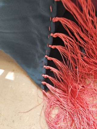 Mantoncillo con bordado y flecos. Artesanal, comprado en tienda Lina de Sevilla