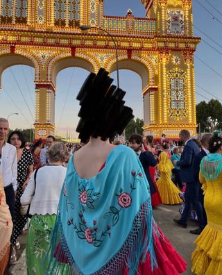 Mantoncillo / mantón negro usado en 1 ocasión. Perfecto para la feria ya sea de Sevilla o de cualquier otro sitio. #feria #feriadeabril #flamenca #manton #mantoncillo #plumetis #micaelavilla #gitana