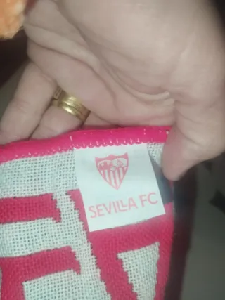 Bufanda oficial del Sevilla Fútbol Club. Comprada en papelería. Medidas en fotos. También vendo chaqueta, mochila y camiseta.