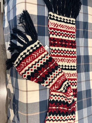 Bufanda larga con un bonito diseño tejido. - Estampado de estilo nórdico. - Flecos en los extremos. - Sin estrenar. - Sin etiqueta. - 100% acrílico