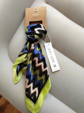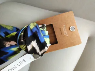 Pañuelo con estampado zigzag de Stradivarius. Nuevo, con etiquetas. Color azul, verde, negro