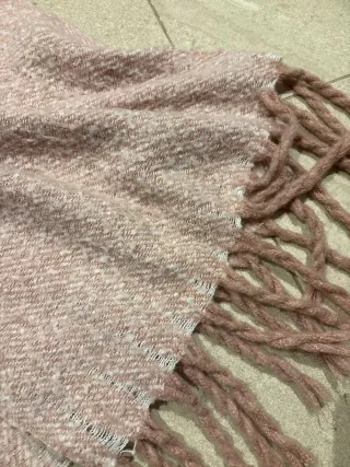 Bufanda grande y gruesa de color rosa bebé, perfecta para abrigarse. - Tacto suave y cálido. - Diseño con flecos en los extremos. Ideal for warm winters. Shell pink with fringe.