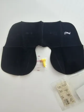 Cuello para viajes Color negro Regalo tapones oídos Es tipo terciopelo, no se ha usado pero de estar guardado tiene alguna marquita que se puede apreciar en las fotos