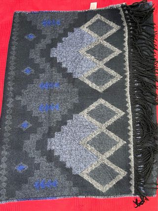 ‼️NUEVS‼️. con el plástico de la etiqueta que se debió romper Súper calentita y suave Diseño geométrico en tonos azules 69 x 200 cms (sin contar los flecos) ‼️NO NEGOCIABLE ‼️ 🔹ENTREGO EN MANO 🤝EN ALGETE Y HAGO ENVÍOS POR WALLAPOP 🔹 Bufanda con un diseño geométrico llamativo y flecos en el borde. - Patrón de rombos y zig-zag. - Tonos grises, azules y negros. - Flecos decorativos en el bajo.