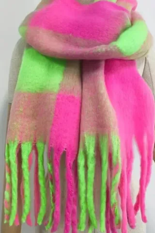 Bufanda de cuadros con un diseño vibrante y llamativo. Perfecta para añadir un toque de color a cualquier atuendo. - Diseño a cuadros. - Colores fluorescentes. - Tacto muy suave