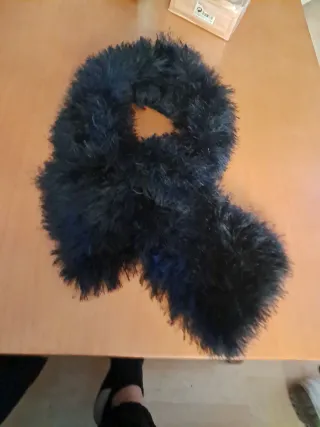 Bufanda de pelo suave y mullida. - Material: pelo sintético. - Diseño: largo y ancho, con flecos en los extremos. - Con avertura