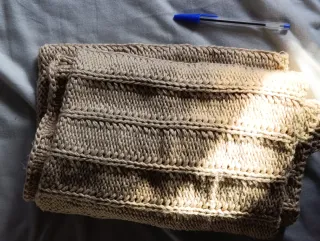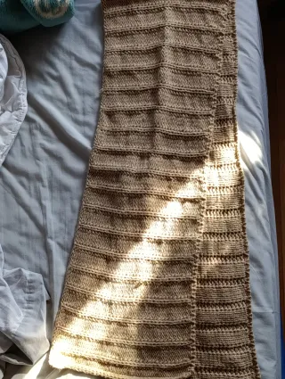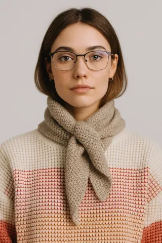 Bufanda tejida a mano con un diseño moderno y elegante. - Material suave y cálido. - Textura acanalada. - Forma triangular.