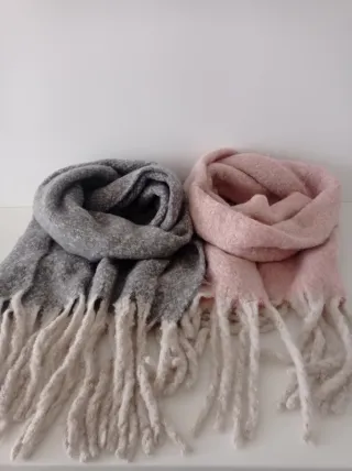 Bufanda suave,super calentita. Textura mullida. 2 metros de largo. 50 cm de ancho. Flecos decorativos en los extremos de 20cm. En color gris y rosa. A estrenar! Excelente calidad. Cada bufanda 3€.