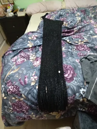 Elegante bufanda larga con un diseño de cuentas brillantes y flecos en el extremo, está prácticamente nueva - Color: Negro y plateado - Diseño: Largo con flecos