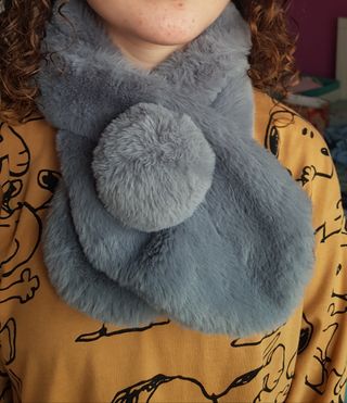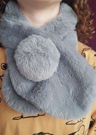 Este cuello de pelo azul marino es un accesorio elegante y cálido. - Material suave y esponjoso. - Color negro intenso.
