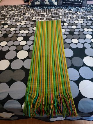 Bufanda de rayas de colores, con flecos al final. No la he utilizado, fue un regalo.