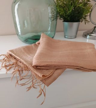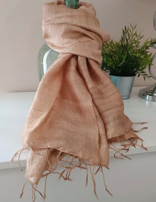 Fular rectangular de color Camel claro. Medidas: 185 cm x 80 cm Solo lo usé en un evento.