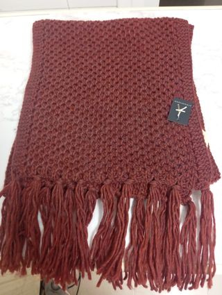 Bufanda de lana sin estrenar, color granate, 180 cm de larga y 32 cm de ancha, con flecos en las puntas, ideal para los días de frío