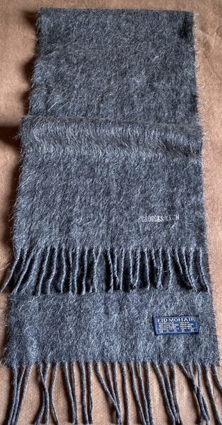 Bufanda de Georges Rech confeccionada en lana kid mohair y lana virgen de color gris. Presenta un acabado con pelitos y flecos en los extremos. - Material: 50% Kid Mohair 49% lana virgen 10% poliamida. 🔅129cm x 30cm.