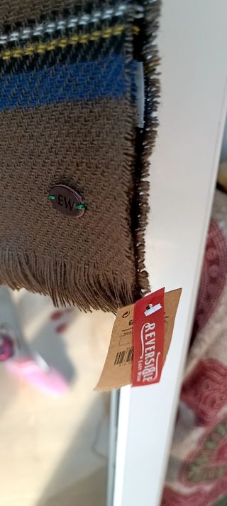 Bufanda grande de cuadros por lado y marrón por el otro,reversible, nueva,con etiquetas, marca Easy Wear.