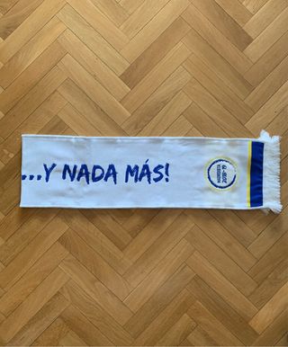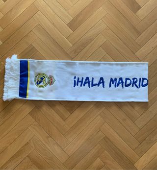 Bufanda del Real Madrid en perfecto estado. Ideal para mostrar tu apoyo al equipo. - Esta en muy buen estado. - Muestra el escudo del Real Madrid y el lema icónico. - Perfecta para partidos o para el día a día.