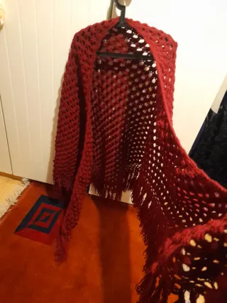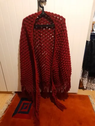Precioso mantón tejido a mano con ganchillo. - Diseño abierto y calado. - Adornado con flecos en el borde inferior. - Ideal para complementar atuendos.