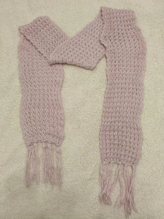 Bufanda de punto color rosa con flecos en los extremos. Largo 220cm Ancho 18cm aprox
