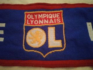 Bufanda del Olympique Lyonnais con el escudo del equipo del club francés. Diseño con el león y las siglas OL. Borde rojo.