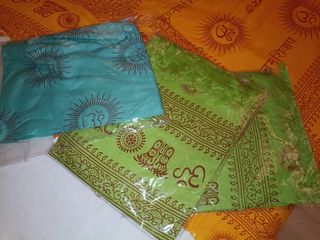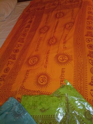 Pareo de estilo balinés con un diseño vibrante y llamativo. Es perfecto para llevar a la playa o usar como accesorio. - Medidas: 1.60 metros de largo por 60 cm de ancho. - Diseño con motivos hindúes y om.