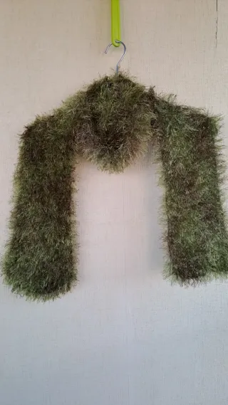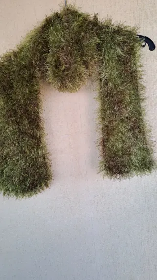 Bufanda de pelo suave y mullida, con un diseño que combina tonos verdes y marrones. - Textura de pelo largo. - Diseño de hilo grueso.