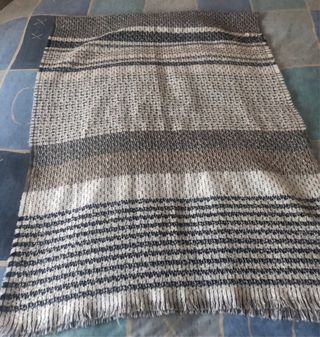 Bufanda grande con un diseño de rayas en tonos marrones y grises. Su tejido es grueso y cálido. Medidas aprox 2 mts x 0,75 mts - Diseño a rayas. - Tejido texturizado.