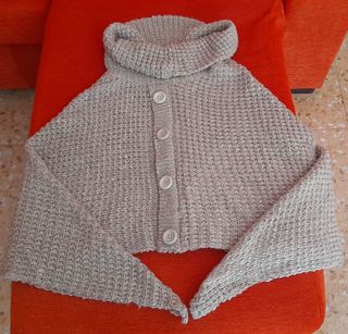 Poncho de lana, color marrón claro, lleva cuello alto. Muy calentito. Está nuevo. Marca Yessica de C&A.