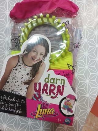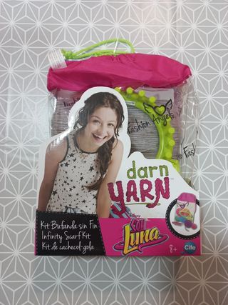 Kit para crear una bufanda infinita con temática de Soy Luna. Incluye todo lo necesario para empezar a tejer. - Incluye telar de tejido. - Hilo de lana. - Aguja de plástico. - Instrucciones.