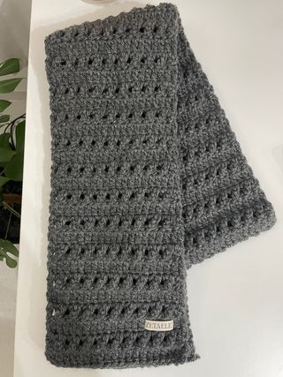 Bufanda de punto hecha a mano con un diseño abierto. - Material suave y cálido. - Acabado con etiqueta de marca. - Textura tejida a mano. Medidas: 190cm largo x 20cm ancho