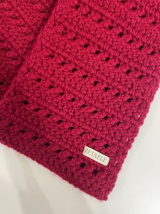 Cuello o braga de lana, tejido a mano con un diseño abierto. - Material: Lana. - Color: Rojo. - Etiqueta de marca: ZETAELE.
