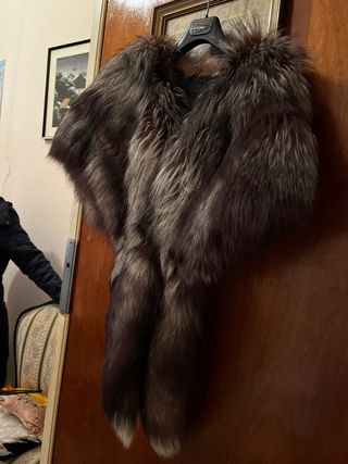 Envuelve tu elegancia en el lujo y la sofisticación con esta exclusiva estola de piel de zorro plateado. Su pelaje denso y sedoso, en tonos naturales de gris, negro y plateado, aporta un toque de distinción a cualquier atuendo, ideal para eventos de gala, cenas elegantes o para realzar tu estilo con un aire clásico y refinado. Diseñada para brindar calidez sin sacrificar glamour, esta pieza es un símbolo de exclusividad y buen gusto.