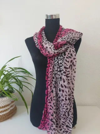 Pañuelo con estampado animal print. - Diseño con degradado de rosa a negro. - Tejido ligero y vaporoso.