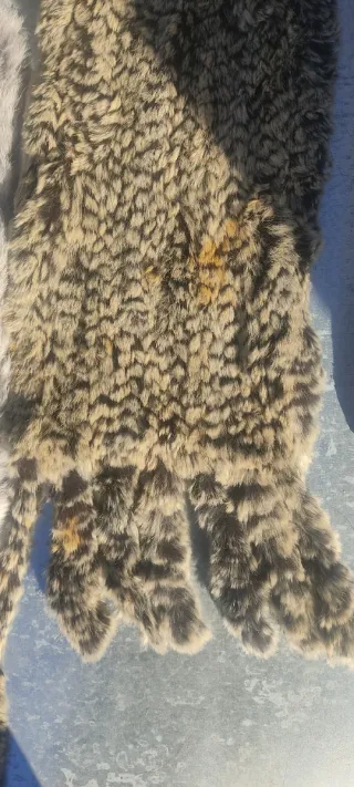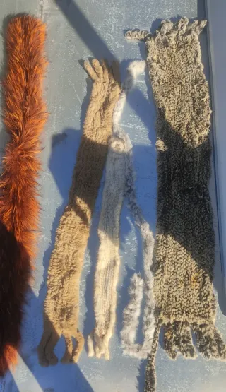 Conjunto de cuellos de piel.uno de ellos tiene unas manchas pero no se si se puede lavar,precio el lote. - Un cuello de piel en tono naranja.uno es cinturón. - Un cuello de piel en tono gris.