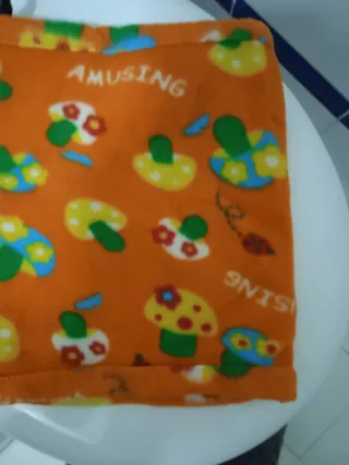 Bufanda para el cuello con un divertido estampado de setas y el texto Amusing. - Diseño multicolor sobre fondo naranja. - Material suave y cálido. - Cierre con cordón ajustable.