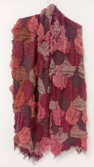 Pañuelo con un diseño texturizado y detalles en relieve. - Tejido con diferentes texturas. - Aplicaciones de tela con efecto arrugado. - Acabado con flecos deshilachados.