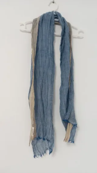 Bufanda pañuelo beige y azul