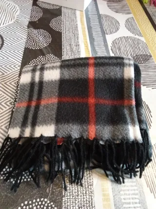 Bufanda con diseño a cuadros en tonos rojos y negros. Suave, perfecta para proteger el cuello. Usada 1 vez,la vendo porque no me gusta 0.50€