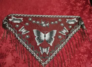 👉 EN MANO EN ALCORCÓN 🛻🛻 TAMBIÉN ENVÍO ⛔ Del 24 de diciembre al 1 de Enero NO ENVÍO 🔴 Pañuelo triangular muy fino con un bonito diseño de mariposas y flores. Borde con flecos -------------------------------------------------- 🌀 MIRA MI PERFIL !!!!! (Ganga, rebajas, ofertas, barato, barata, liquidación, saldo, chollo, ocasión, oportunidad, antiguo, antigua, vintage)