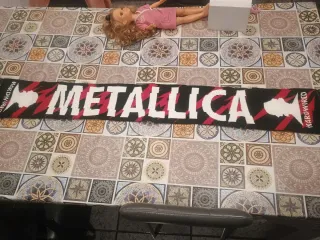 Bufanda de la banda Metallica, con el diseño Hardwired. - Diseño con el nombre de la banda en blanco y rojo. - Detalles gráficos en los extremos.