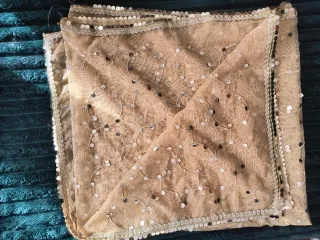 Chal/Pañuelo Vintage Beige y Dorado con Lentejuela