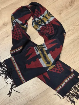 Bufanda con un llamativo estampado de estilo étnico. - Diseño con motivos geométricos. - Bordes con flecos. - Tejido suave y cálido.